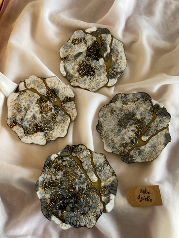 Zestaw czterech podkładek Geode, wykonanych własnoręcznie z żywicy epoksydowej wysokiej jakosci